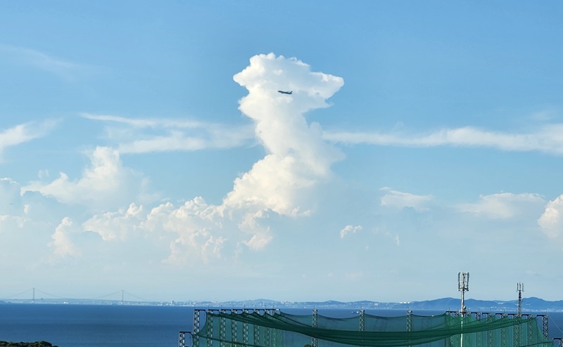須磨上空の怪獣雲と関空から飛び立った飛行機が重なりました