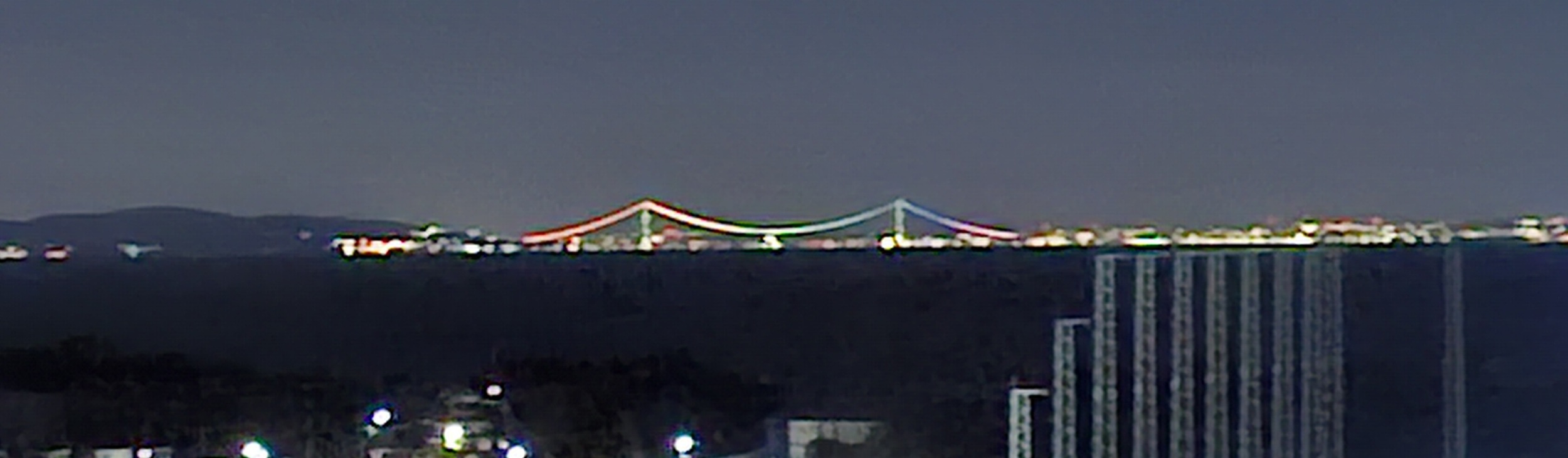 霊んちで新年を迎え、ぜんざいを食べながら眺める海峡大橋は七色に輝いてます