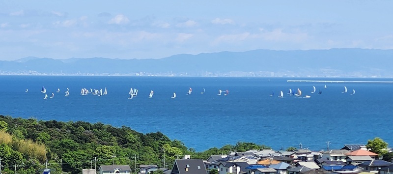 近くのハーバーから多数のヨットが出てきました